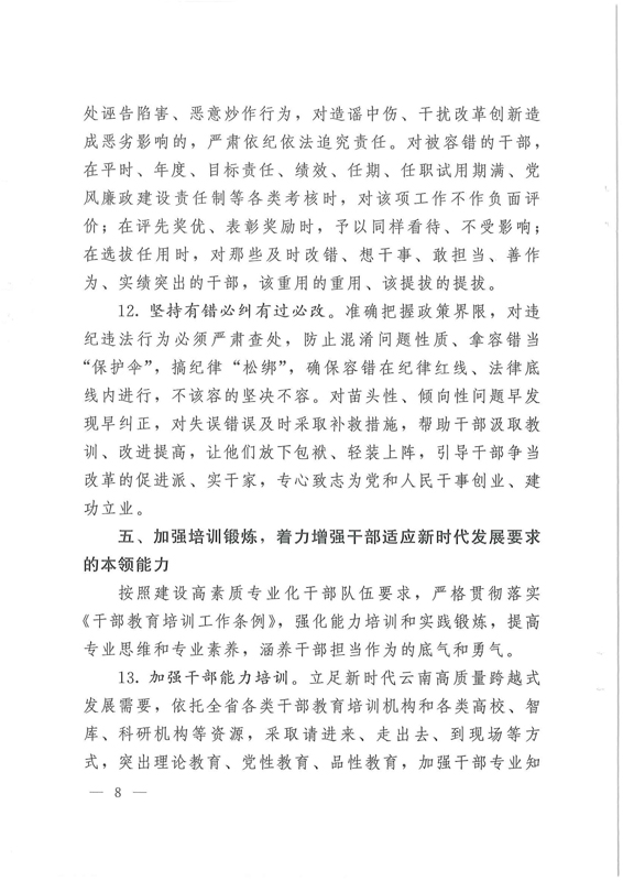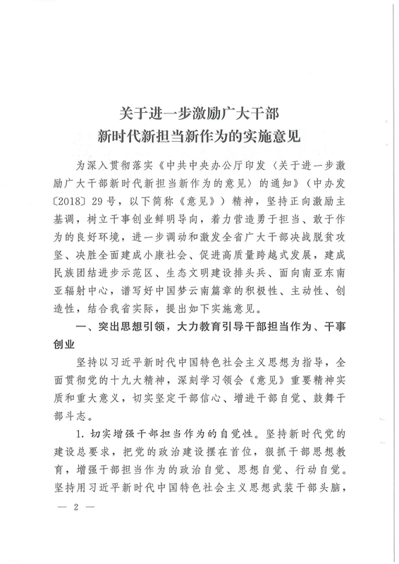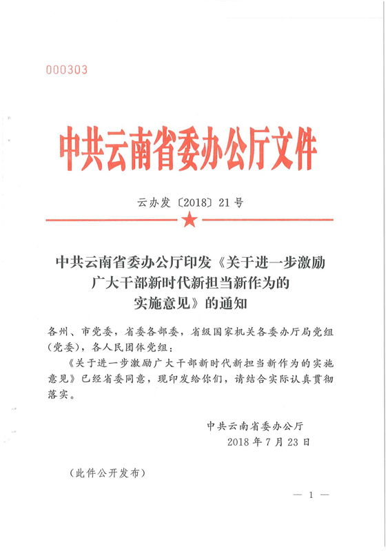 中共云南省委辦公廳印發(fā)《關(guān)于進(jìn)一步激勵廣大干部新時代新?lián)?dāng)新作為的實(shí)施意見》的通知