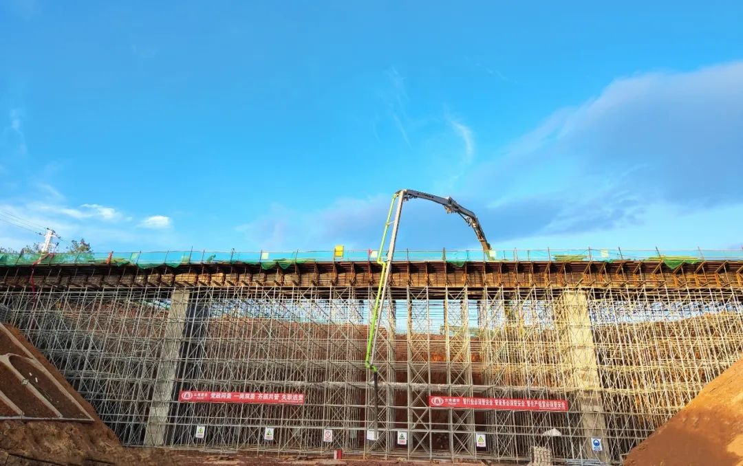 永大項(xiàng)目部蓮勐線車行天橋首次澆筑順利完成