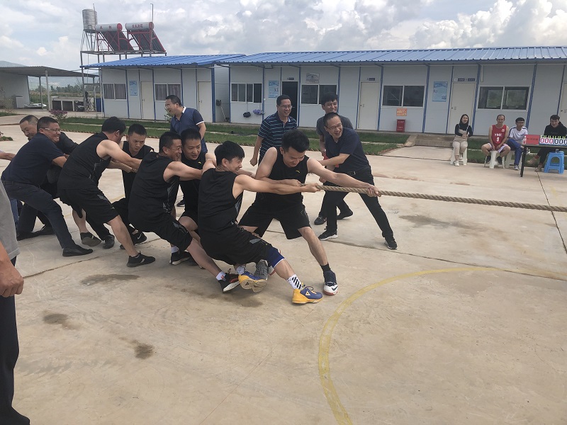 2019年7月24日,農(nóng)歷六月廿二日,正值彝族火把節(jié),祥云財(cái)富鐵路專用線投資建設(shè)開發(fā)有限責(zé)任公司與總公司第一直管部祥云財(cái)富鐵路專用線項(xiàng)目經(jīng)理部共同舉行聯(lián)誼活動(dòng)。祥云縣人民政府、祥云財(cái)富工業(yè)園區(qū)管理委員會(huì)等多個(gè)政府單位和監(jiān)理單位受邀參加。本次活動(dòng)主要舉行了兩場比賽,在祥云項(xiàng)目部操場,管委會(huì)與SPV公司組成一支聯(lián)隊(duì),與EPC項(xiàng)目部進(jìn)行了拔河比賽和籃球比賽。