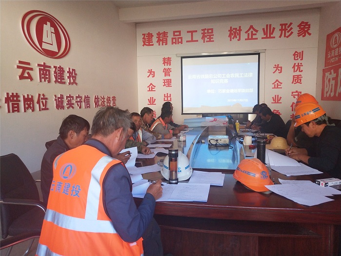 為進(jìn)一步深化云嶺職工素質(zhì)建設(shè)工程,拓展農(nóng)民工法律知識培訓(xùn)受眾面,在廣大農(nóng)民工中大力營造尊法學(xué)法守法用法的良好氛圍,讓農(nóng)民工合法權(quán)益得到更好保護(hù),鐵路總公司工會、人力資源部、風(fēng)控法務(wù)部面向農(nóng)民工開展普法教育法律知識競賽。